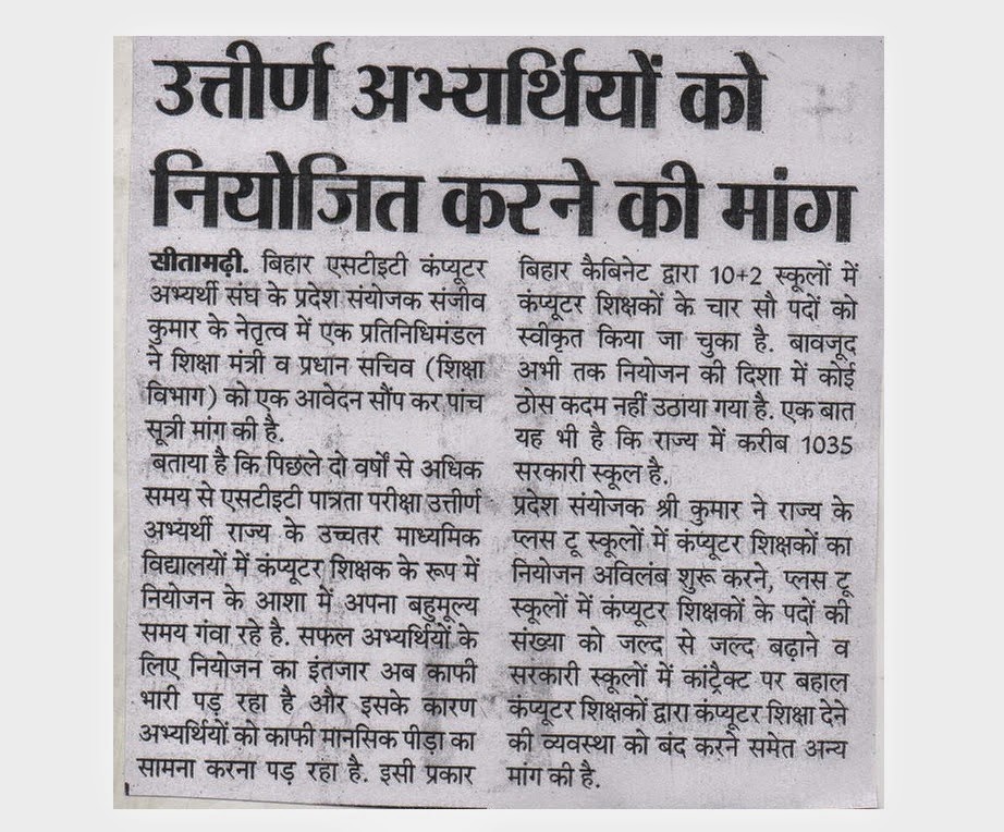 The Bihar Government on Tuesday came under the Supreme Court scanner for an unkept promise made to provide senioritywise list of candidates in recruitment of trained teachers. SC raps Bihar government, trained teachers recruitment, Supreme Court, teachers. Short title and application: (1) These rules may be called the West Bengal Primary Education (Transfer of Teachers including Head Teacher) Rules, 2002. UP Teacher Transfer 2018: Latest News 28 March Date come closure to get transfer in Parishad School now Teacher can check their transfer list from 28 March to 1 April 2018. Those who have any objection in transfer related problem they may read Latest below paper jobs cutting. BIHAR TEACHERS LATEST NEWS INFORMATION: District wise list for recruitment of teachers has been released. It is learned through news reports that Bihar Education Minister P K Shahi has said that teachers recruited through this recruitment drive. That the Final revised List of 34, 540 candidates, in terms of the direction of this Hon'ble Court dated, was received by the Education Department from. Bihar Salary Get a free salary comparison based on job title, skills, experience and education. Accurate, reliable salary and compensation comparisons for India. Download SarkariExam Mobile App (Free Job Alert On Mobile) From T M Bhagalpur univercity of 2002, i am intertest for apply to teacher of bihar. so you can help apply seateam my email id. Thanking You Regards Rakesh Kumar Singh. utam kumar varnwal says: November 21, 2011 at 4: 46 am. About Latest Bihar teacher exam. districtwise merit list betet bsitet stet bihar 7th pay fixation: 7. Bihar Government Published an advertisement for filling posts of Assistant Teachers in Primary School of Bihar. Selection will be made on the basis of merit. The deponent indicated that he was the Principal Secretary, Human Resource Development Department, Government of Bihar, and it was mentioned in paragraph 4 of the said Affidavit that 34, 540 posts of Assistant Teachers had been created as a onetimemeasure for appointment in Elementary Schools of the State of Bihar and to facilitate the process. Guest Teacher Draft Merit List (Zoology) Sheikhpura DM office Tender for providing computers, Electronics items and stationary items DM office Tender for 2 Nos. Multi Function Print, Scan, Photocopier Heavy Duty Machine. Secure, Scalable and Sugamya Website as a Service. Purnia has an area of 3, 202 square km. It is a level, depressed tract of country, consisting for the most part of a rich, loamy soil of alluvial formation. free educational clipart for teachers educational clipart for teachers christmas list clipart education clipart borders teacher appreciation clip art royalty free clipart for teachers pin Bihar Education News: Transfer is possible for category teachers The Bihar Teacher Eligibility Test result was released by BSEB Chairman Anand Kishore around 3: 30 pm this afternoon. Taking cognisance of the allegations against some principals of government schools for victimising teachers in the name of transfer, the. Teacher info point is on Facebook. To connect with Teacher info point, join Facebook today. Prabhakar Jha I advice bihar government to announce all the benefits of government employee to teachers. Also announce facilities of 7th pay We want to see the news related to on this timeline. Bihar teacher niyojan latest news on facebook: bihar teacher recruitment from 2012 date posts of Bihar teachers Bharti was not fill total 2251 teachers has given appointment letter and. Under Vishesh Shikshak Niyukti Niyamawali, 860 General and 100 Urdu Teacher who were absent in Bihar Staff Selection Commission (Bihar Karamchari Chayan Ayog) BSSC teachers Niyukti 2012 have been called for counseling on 19 June 2015 as per indtruction made by Pradhan Sachiv Shiksha Vibhag Bihar Patna. Bihar SSC Teacher Recruitment Final List 2010 2011 Bihar Staff Selection Commission has published the final list of Assistant Teachers on the basis of direct recruitment process. You can access the final Result on the official website of Bihar Education Department. To find more books about teachers transfer list of2017, you can use related keywords: ME2251 Heat And Mass Transfer Book HMT Heat And Mass Transfer By Rajput, Malayalamsexstories Teachers, Teachers Kusruthichodyam, Kambikathakal Teachers, Teachers Kambikkadhakal, Teachers Kambikatha, Teachers Kambikatha, Teachers Kambikkathakal. State Government Employees News 7th Pay scale for Niyojit Teachers Panchayat teacher of Bihar. As per latest expected modification in 7th pay commission report, minimum salary for any employees (including teachers) will be Rs 24, 000 per month ( expected). AP Teachers, AP PRC 2015 GOs, PRC GOs, Pay Revision Commission 2015, Employees HEALTH CARDS, APGLI, GIS, CPS PRAN, APTEACHERS WEBSITE Selection list of contractual doctors for APHC Executive Assistant Regarding Reemployment (Punarniyojan) and Recruitment from district level pannel Rural works department tender invitation notice. Transfer Policy Group C and D Staff should not be transferred. Searches related to bihar teacher bihar teacher salary bihar teacher merit list bihar teacher recruitment latest news bihar teacher niyojan bihar teacher recruitment 2015 bihar teacher recruitment board bihar teacher result 2011 bihar teacher exam date. Created Date: 2: 06: 19 PM LatestUpdated News UPTET, CTET, BETET, RTET, APTET, TET (Teacher Eligibility Test) MeritCounselling for Primary Teacher(PRT) of various state government including UP, Bihar Home Junior High School Science Math Teacher Recruitment Recruitment process of Assistant teachers by Bihar Staff Selection Commission (BSSC) in direction of Honorable Supreme Court is going on. Now it is the time is about to come when and the merit list of the Assistant teachers will be published by Bihar Staff Selection Commission (BSSC). I accordingly settle the Final Seniority List today and submit for kind approval of the Hon'ble Supreme