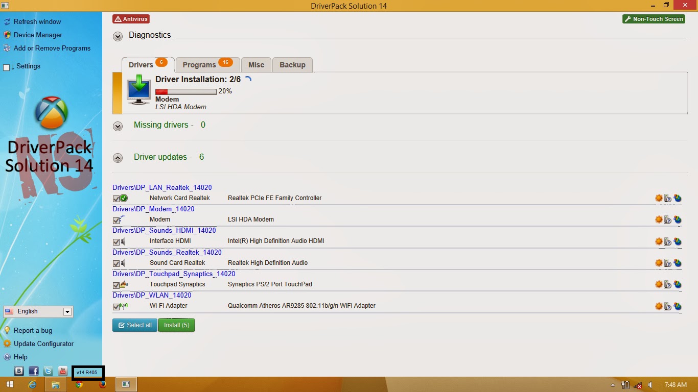 DriverPack Solution is the most popular program that makes the job of finding and automatically installing drivers a pleasure. DriverPack Solution simplifies the process of reinstalling Windows on any computer. DriverPack Solution ayn trdeki dier yazlm zmlerinin veremedii bir grup seenekleri olan ilgin bir uygulamadr. Herhangi bir kullanc tm hatalar dzeltebilir ve sistemin dzgn bir ekilde ilemesini ve aygtlarn sadece iki tklama ile ayarlayabilir. DriverPack Solution to darmowe narzdzie przeznaczone do aktualizacji sterownikw w systemach Windows XPVista78. W odrnieniu od innych rozwiza tego typu korzysta ono z bazy komponentw w trybie offline. Program jest bardzo prosty w obsudze, oferuje przejrzysty i. DriverPack Solution Online ndir Trke Portable. DriverPack Solution Online, Windows xp vista, 7, 8, 8. 1, 10 32x64bit driver gncelleme program interneti olanlara zel online tm driverinizi gnceller ve indirir. DriverPack Solution 2018 Offline Features: Works with Windows 10, Windows 8, Windows 7, Windows Vista, and Windows XP. DriverPack Solution is a lightweight program that doesnt take long to download and connects to the internet for free online driver updates. DriverPack Solution Online can find and automatically install Driver Updates for hardware components in Windows. It can check the version information of your existing drivers and check online for updates. DriverPack Solution 2017 is the most popular program for automatically installing, updating and searching drivers. It is a versatile driver for installing drivers for all versions of Windows. It is a versatile driver for installing drivers for all versions of Windows. Download DriverPack Solution 2018 version online and. These latest packages will automatically update all drivers (for the chipset on the motherboard, WiFi, network, sound card, modem, and webcam, etc. DriverPack Solution is a free driver updater tool that, with just a few clicks, finds the proper device drivers your computer needs and then downloads and installs them for you no clicking through any wizards or installation prompts. Full dalam hal ini kami menyediakan link download Single Link dan Part Link untuk Download DriverPack Solution 15. Untuk lebih mudahnya silakan gunakan Link dari Kumpulbagi atau Userscloud untuk mendownload DriverPack Solution 15. DriverPack Solution wyszukuje sterowniki do karty dwikowej, graficznej i sieciowej, kart pamici (USB), monitora, kontrolerw, aparatw fotograficznych, kamer cyfrowych oraz do poszczeglnych komponentw wchodzcych w skad pyty gwnej. 10 Full ISO Free Download Latest Version for Windows. It is full offline installer standalone setup of DriverPack Solution 15. 10 ISO Drivers are a must have for establishing a workable connection between your system and the hardware attached to it. 292, 835 likes 254 talking about this. DriverPack Solution is the most popular program that makes the job of finding and DriverPack Solution is a program that automates the process of installing hardware drivers. No longer do you have to deal with any more problems regarding searching for the right drivers and then. DriverPack is the most convenient and fastest way of configuring a computer. The software is provided for free, and is suitable both for professionals and for beginners. DriverPack is provided for free. DriverPack Solution ISO Latest. DriverPack Solution is the OpenSource program that is used to the installation of drivers. This software is helpful to install any drivers. DriverPack Solution 17 free download latest version for windows XPVista78. Get offline installer setup direct high speed download link for. DriverPack Solution The most popular program to automatically install, upgrade, and search for drivers. It is a versatile manager to install drivers for all versions of Windows. It is a versatile manager to install drivers for all versions of Windows. DriverPack Solution For PC Latest Version Download DriverPack Solution driver installation for a couple of clicks to update and simplify the process is designed to be a reliable application. DriverPack Solution (DRP Su), Windows. 6 est diseado para ser utilizado por cualquier persona, desde usuarios domsticos hasta administradores de sistemas, ofrecindole una manera fcil, rpida y eficiente de instalar los controladores correctos para los dispositivos conectados a su computadora y luego mantenerlos actualizados. DriverPack Solution (DRP Su), Windows. 6 adalah salah satu program terbaik untuk menginstal semua driver di komputer atau laptop anda secara otomatis dan tanpa koneksi internet. Bagi para teknisi komputer, aplikasi yang satu ini merupakan salah satu aplikasi yang wajib dimiliki. Cela distingue DriverPack Solution de ses concurrents et attire de plus en plus de nouveaux utilisateurs. Lire la suite DriverPack Solution est une application intressante, elle contient un ensemble doptions que dautres solutions logicielles du mme type ne fournissent pas. DriverPack Solution disini tersedia dalam single link, atau offline installer. Sebuah software atau Aplikasi terbaru buatan Artur Kuzyakov yang digunakan untuk mendeteksi driver. Free Download DriverPack Solution Online Finds outdated drivers on your computer and enables you to download and install the latest versions, so a Download DriverPack Solution Offline Full em Drives Deixe um comentrio Descrio: DriverPack Solution, um programa, gratuito, que faz atualizaes de drives em computadores com o Windows instalado. DriverPack Solution Deutsch: Mit der kostenlosen DriverPack Solution TreiberSammlung bringen Sie Ihre Treiber und Programme auf den neuesten Stand. DriverPack Solution is a utility for the automatic installation of drivers software. This utility is entirely suitable for all models of computers and laptops including Asus, Acer, Sony, Samsung, HP, Lenovo, Toshiba, FujitsuSiemens, DELL, eMachines, MSI, and much more. DriverPack Solution is an interesting application, it contains a set of options that other software solutio